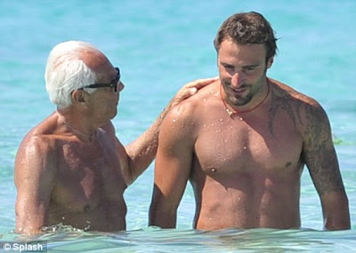 Giorgio Armani looked fighting fit on the beach as he soaked up the sunshine with a friend on holiday on the gorgeous Spanish island Formentera yesterday.